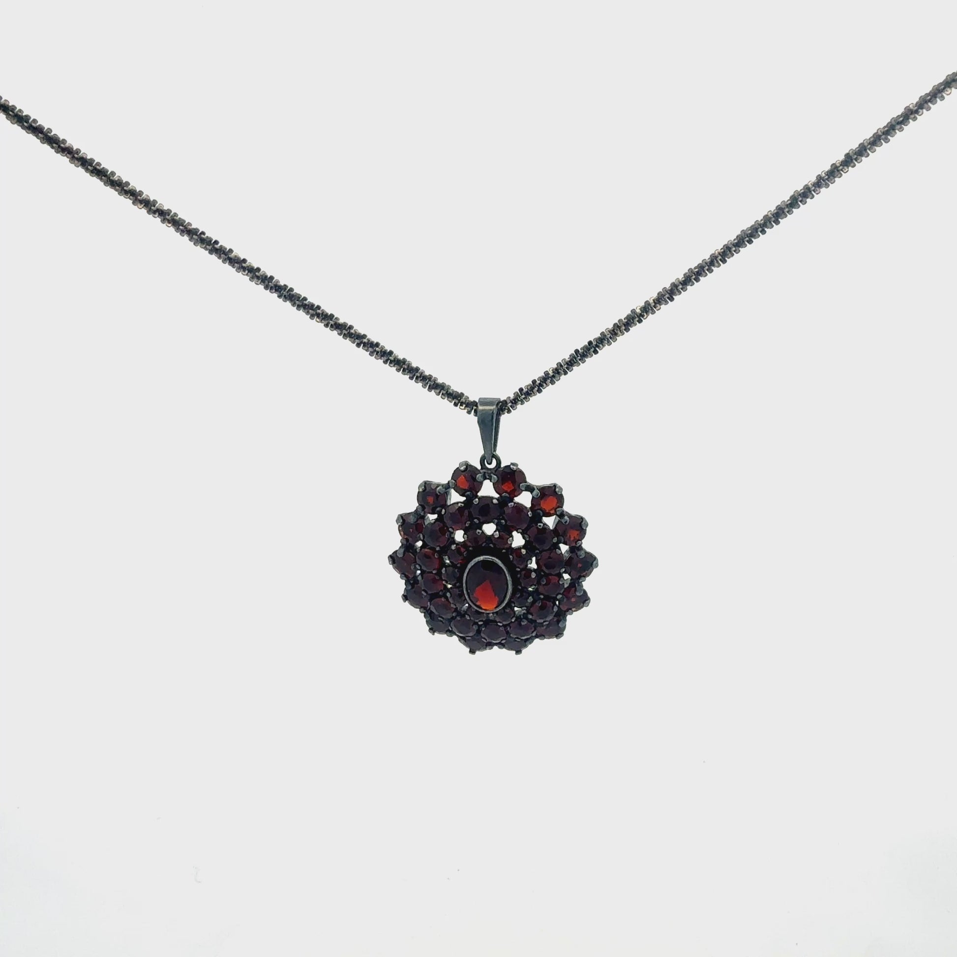 Der tiefrote Granat fängt das Licht auf bezaubernde Weise ein und setzt einen edlen Akzent. Die oxidierte Silberoberfläche unterstreicht den besonderen Charakter dieses Schmuckstücks und macht es zu einem echten Unikat. Ob im Alltag, im Büro oder zu festlichen Anlässen – diese Kette ist vielseitig kombinierbar und immer ein Hingucker.