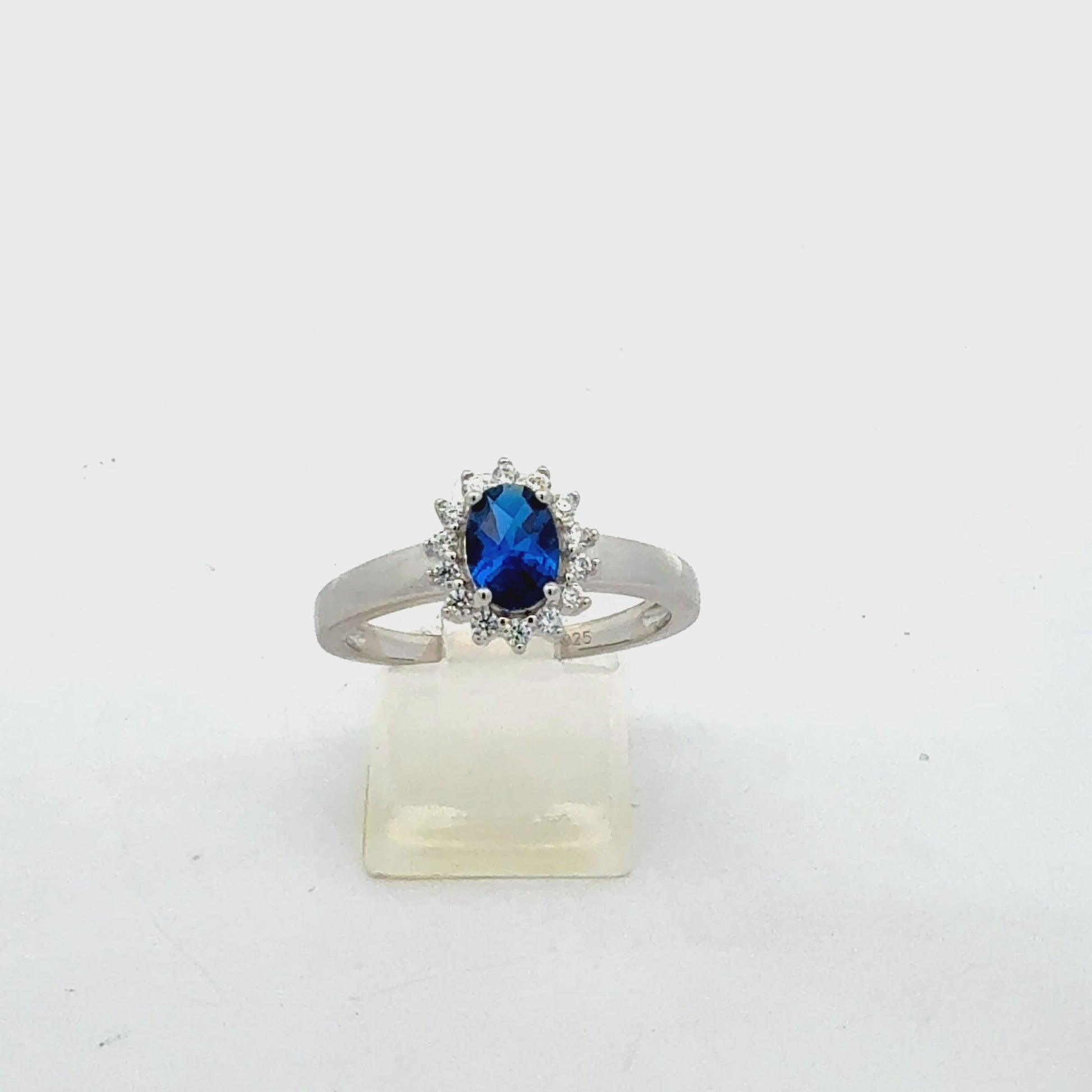 Ring Silber 925 – 2,94 g, Größe 60 mit blauem Stein & Zirkonia