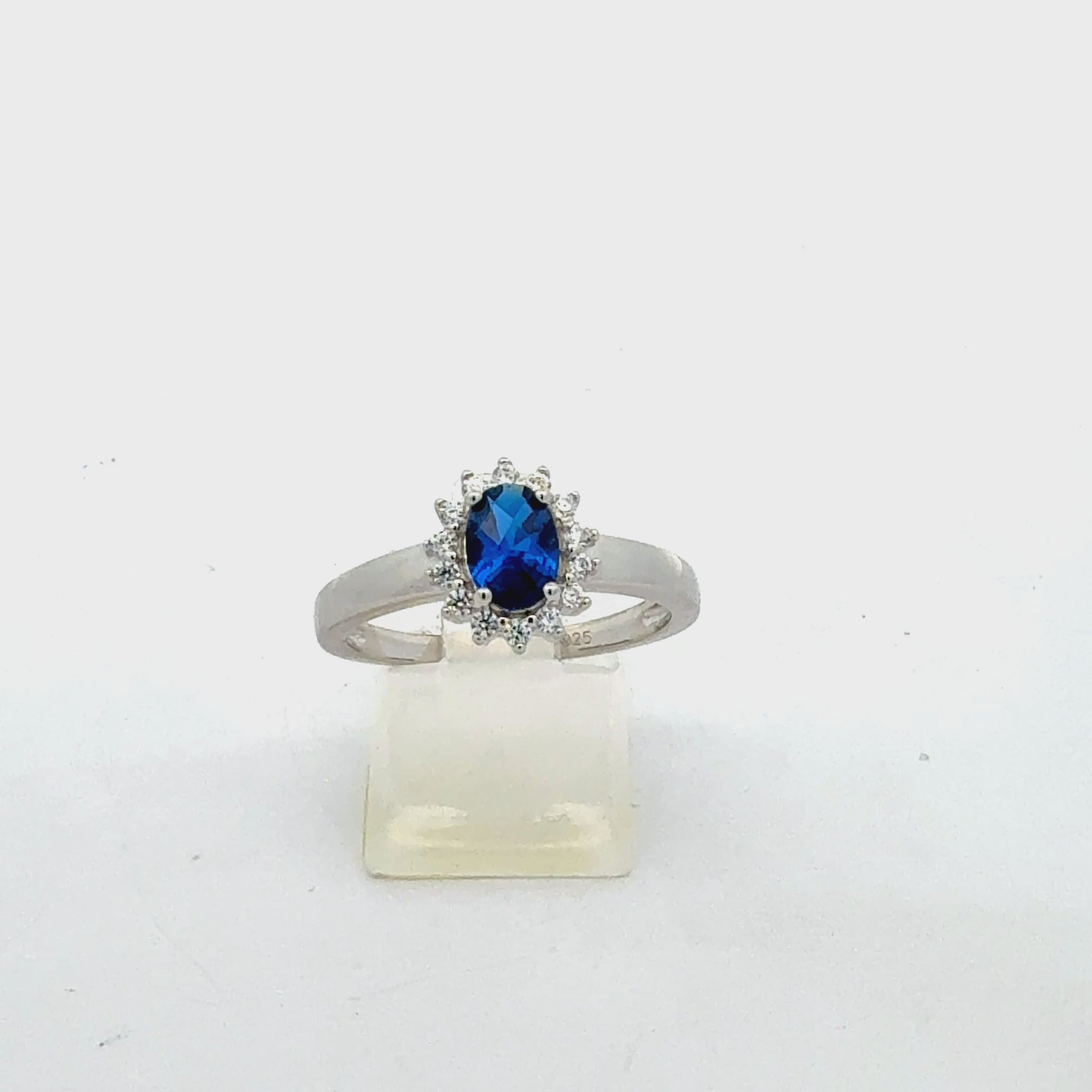 Dieser exquisite Silberring vereint klassische Eleganz mit modernem Design. Der leuchtend blaue Stein im Zentrum wird von glitzernden Zirkonia umrahmt und schafft so ein harmonisches Gesamtbild, das zu jedem Anlass passt.