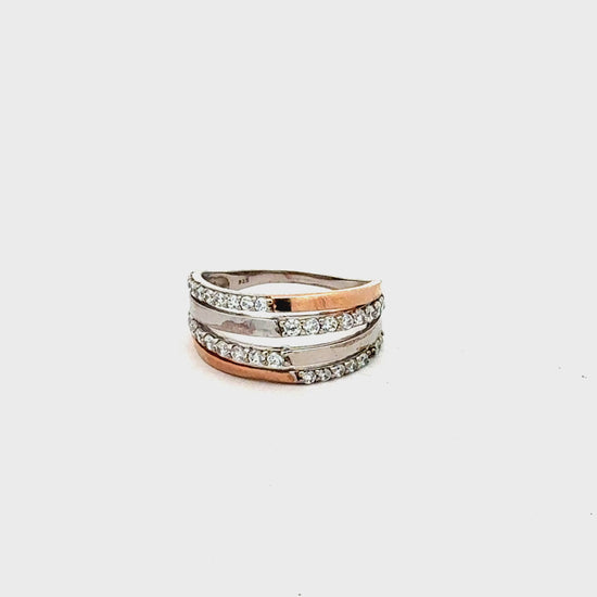 Eleganter Silberring 925, teilweise in Roségold vergoldet und verziert mit funkelnden Zirkonia-Steinen – ein moderner und stilvoller Hingucker.