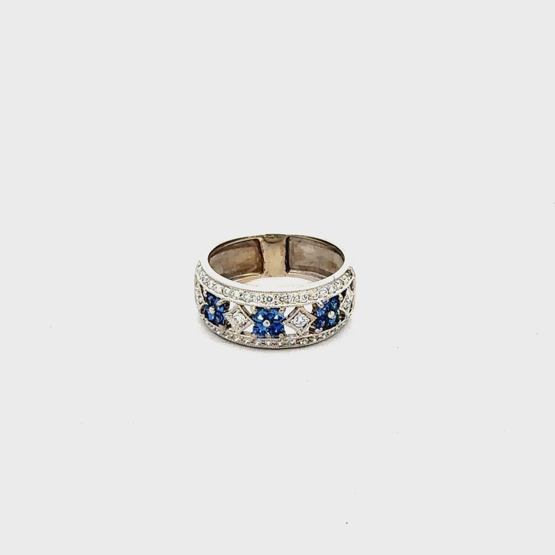 Edler Ring aus 750 / 18 Karat Weiß- und Gelbgold, verziert mit funkelnden Saphiren (0,50 ct) und brillanten Diamanten (0,45 ct) – ein luxuriöses Schmuckstück für besondere Anlässe.