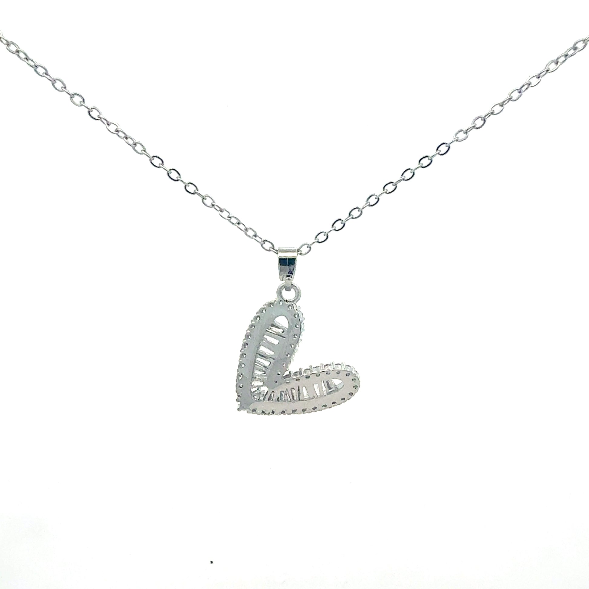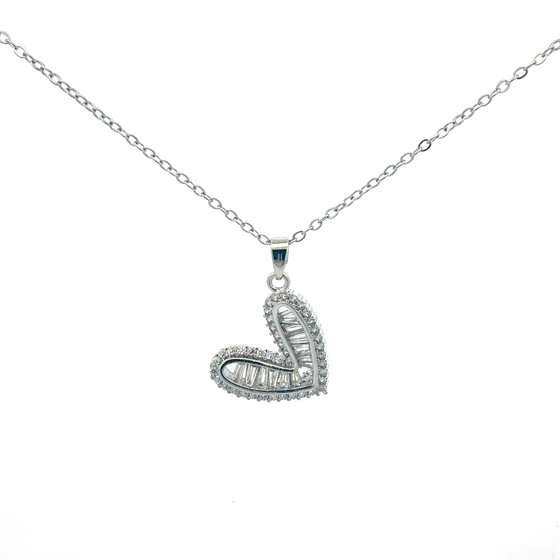 Edelstahl Kette mit Herz-Anhänger & Baguette-Zirkonia