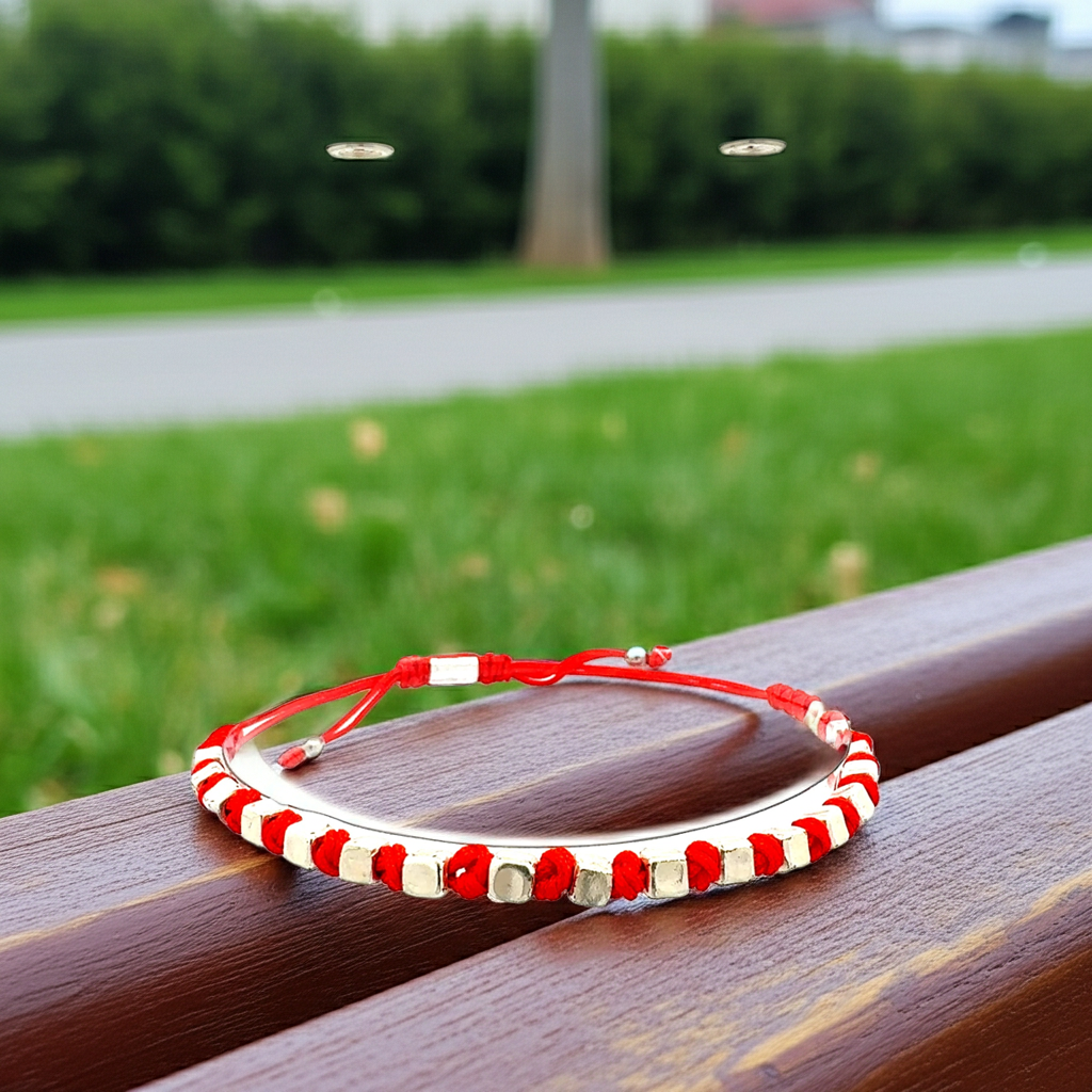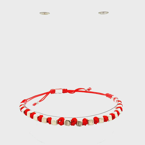 Würfel-Armband "Cubo" | Silber & Rot | Geometrisch & Handgefertigt